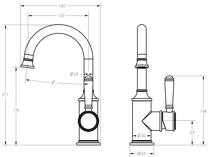 ACL Clasico Basin Mixer Gooseneck - Brushed Nickel
