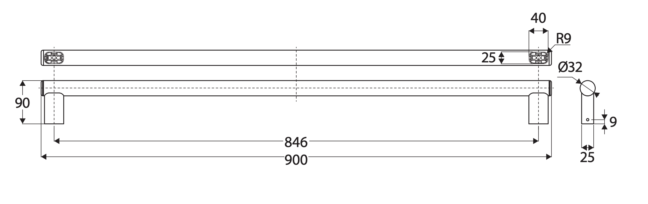 Fienza Care Slimline Hand Grab Rail, 900mm, Gun Metal